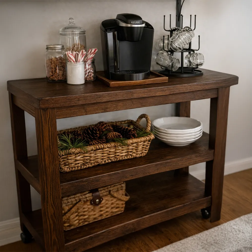 Sunmanın en sade hali. Serve Kahve Köşesi, hazırlanan her kahveyi küçük bir deneyime dönüştürmek için tasarlandı. Sadece yapmak değil; sunmak, paylaşmak ve anı tamamlamak… Serve, bu sürecin en zarif parçasıdır. Masif kestane ağacının sıcak tonları ve doğal damar yapısı, mekâna samimi bir karakter kazandırır. Mat yüzeyi, ışığı yumuşatarak sade ve dengeli bir atmosfer oluşturur. Her detay, doğallığın izini taşır. Geniş üst tabla, kahve hazırlığı ve sunumu için ideal bir alan sunarken; çok katlı raf sistemi fincanlardan kavanozlara, ekipmanlardan dekoratif objelere kadar her şeyi düzenli bir şekilde sergiler. Açık kullanım dili, hem pratiklik hem görsel bütünlük sağlar. Formu net, kullanımı akıcıdır. Serve, işleviyle öne çıkarken sadeliğiyle mekâna uyum sağlar. Serve, yalnızca bir kahve köşesi değil; hazırlanan her fincanın bir sunuma dönüştüğü, küçük ama anlamlı bir sahnedir. Öne çıkan özellikler: Masif kestane ağacı Doğal, mat yüzey ve özgün damar yapısı Geniş üst tabla – hazırlık ve sunum alanı Çok katlı açık raf sistemi Düzenli ve erişilebilir kullanım Zamansız, sade ve işlev odaklı tasarım NODU ile her sunum, bir ana dönüşür.